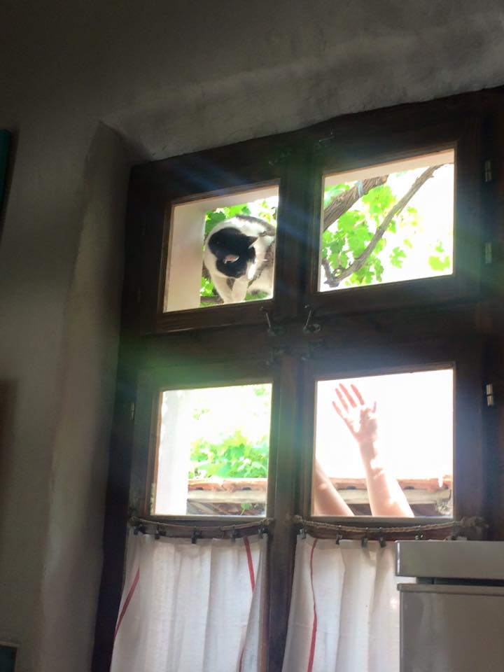 Rob also made some excellent white and red wine last autumn, and it looks like we’re in for another good grape crop – that’s if Barney the Terrible can stop shimmying up the grape vines and clawing his way along them. (This morning, I heard Rob shout in anger for the first time in years, as Barney clung onto the vine above the kitchen window, gradually wrenching it away from the wall. Rob was so mad he dropped a c-bomb. Earth’s axis shifted. The entire village fell silent. Somewhere, a butterfly cried. I thought it was fucking brilliant.)