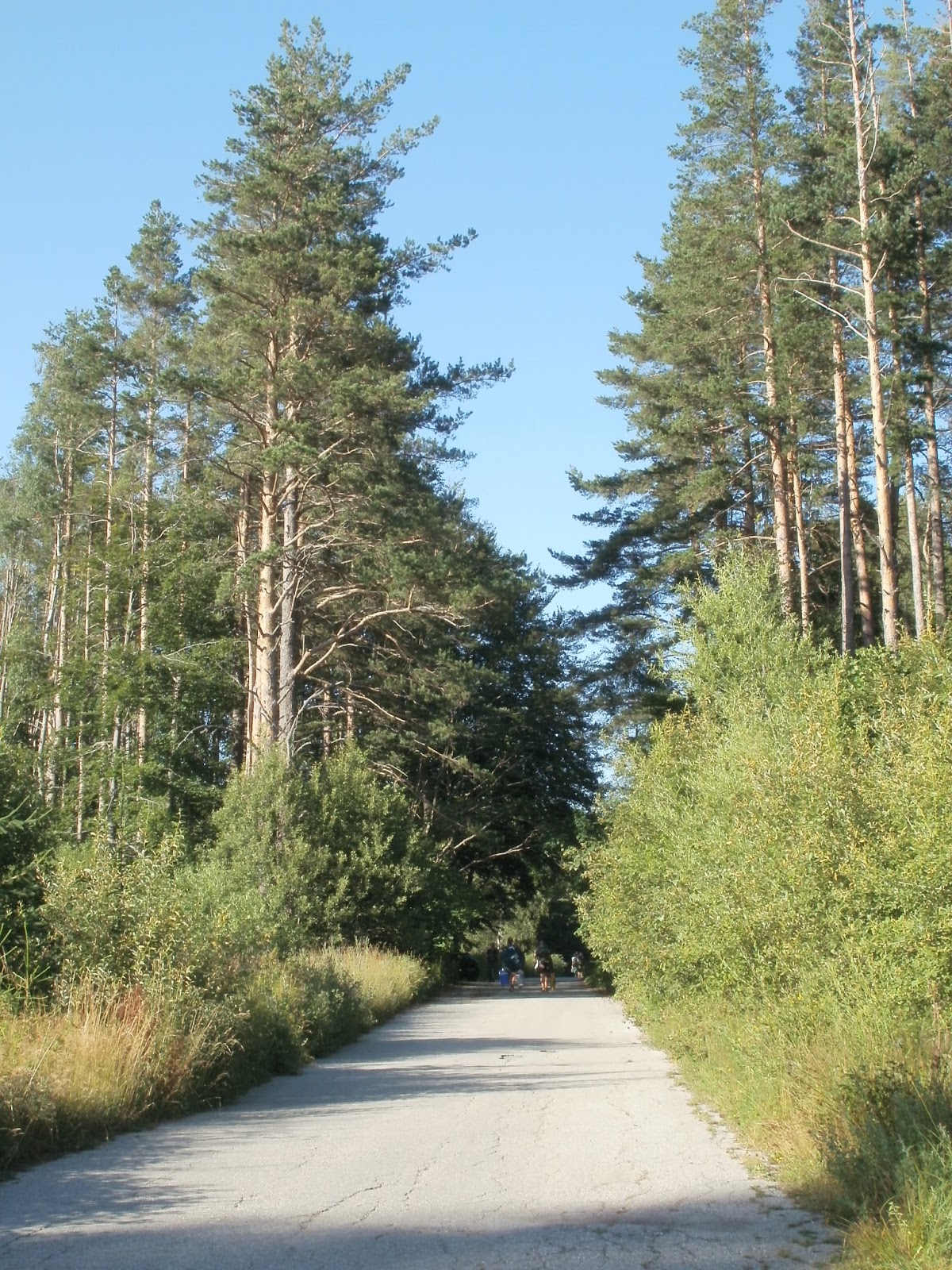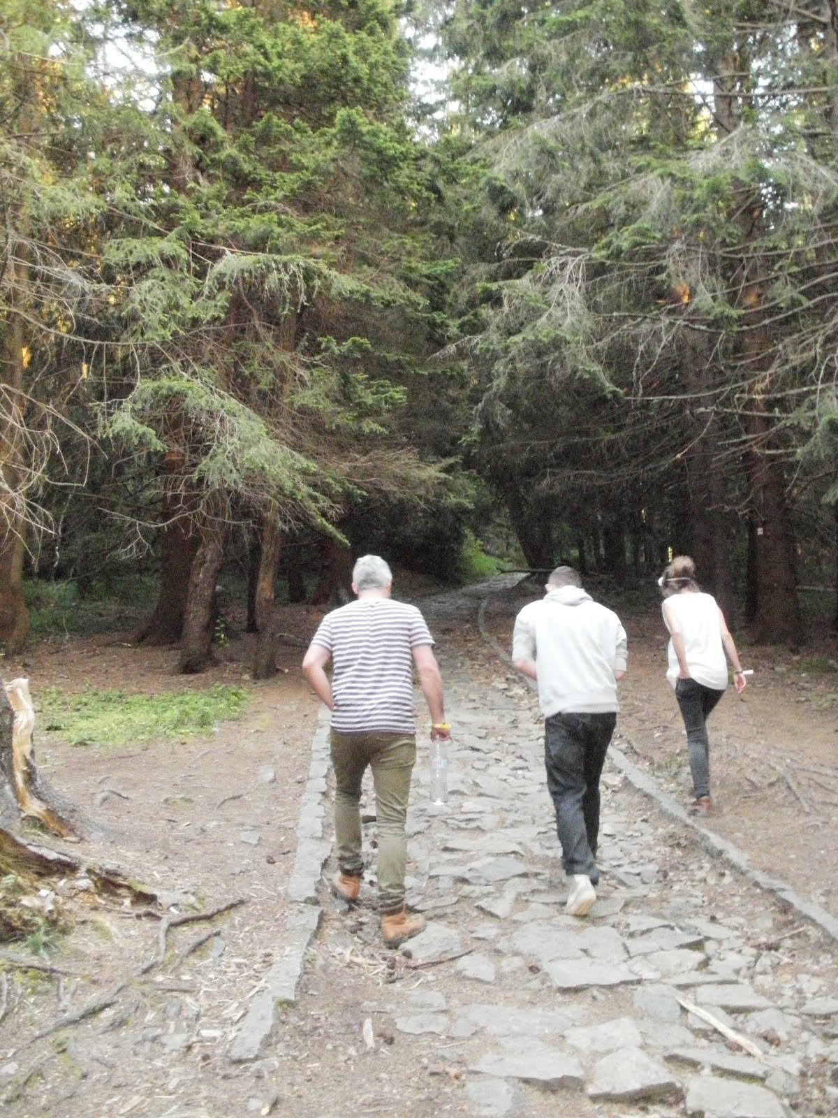 | Hiking up through the forest.