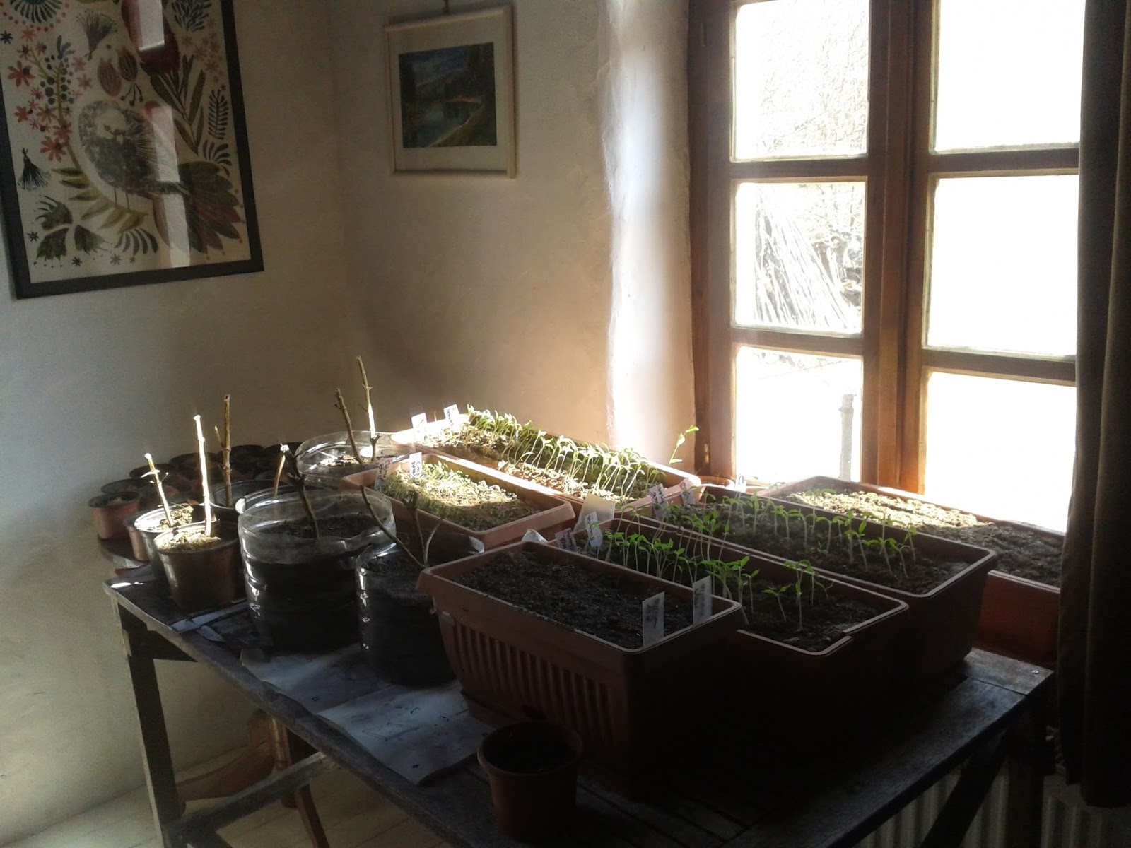 In other Gardening Bore news, we’ve pricked out our tomato seedlings, sown a few more flower seeds, and generally filled our bedroom (which has two sunny windows and is a cat-free zone) with seedlings.