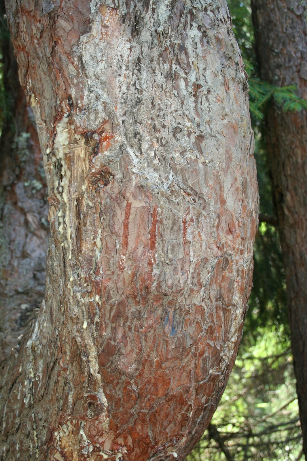 | Bear scratches on the tree. |