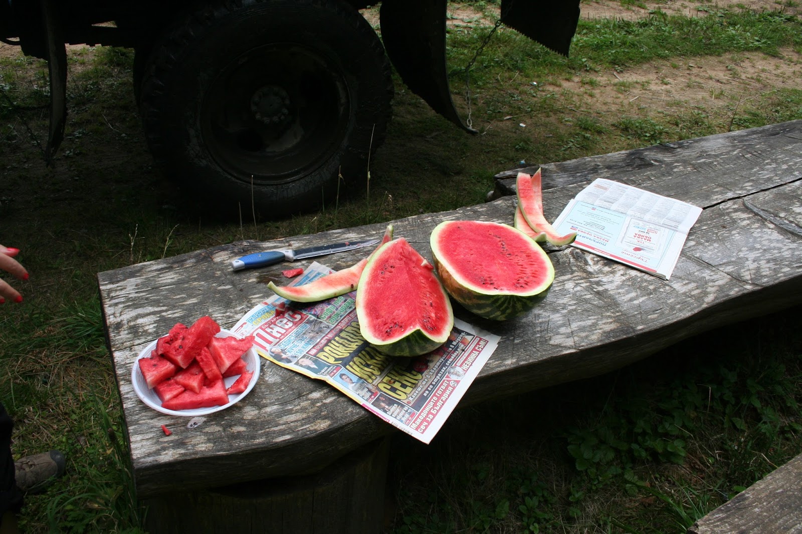 | Some Bulgarian guys made us eat half their watermelon. I was weeing all afternoon.