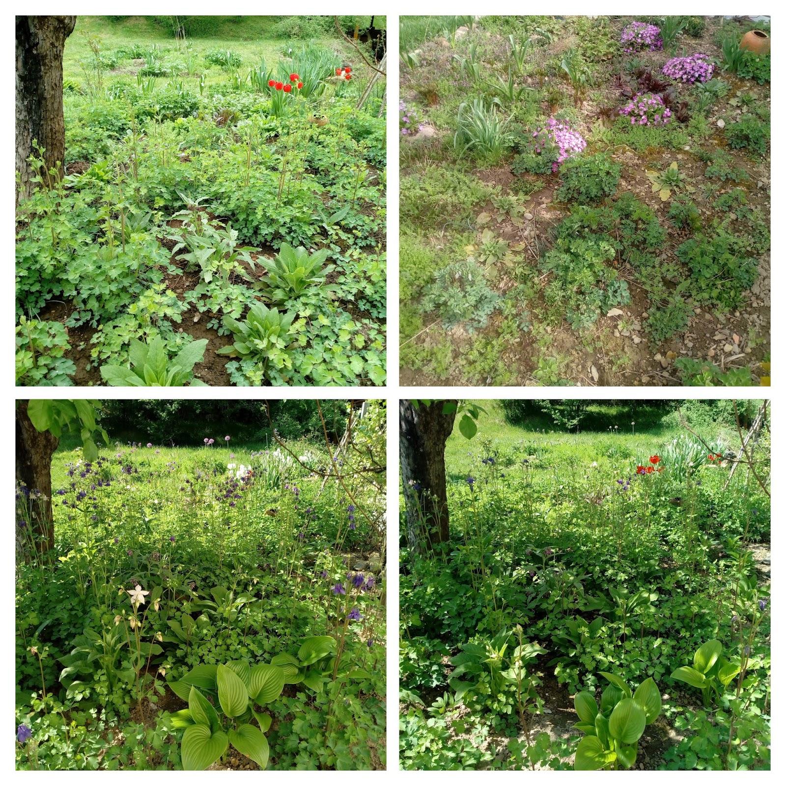 just before I went to the UK. Bottom row is after my trip, with more aquilegias