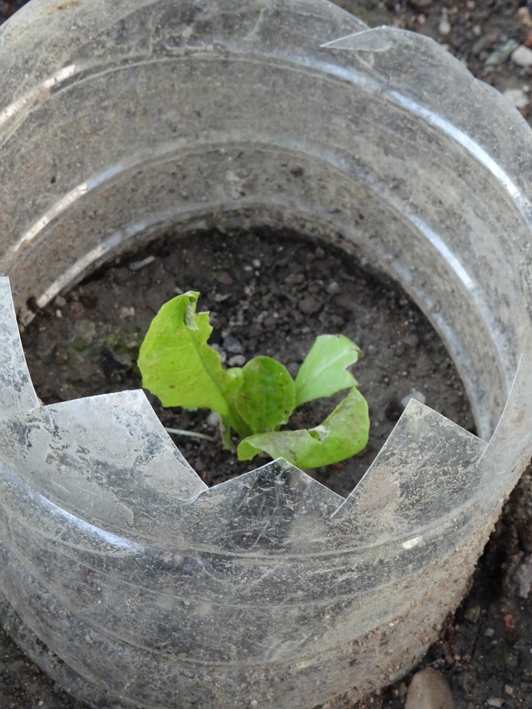 | Look, reader, I have managed to cultivate some lettuce. The bastard snail army had already eaten my first batch but I’m too smart for them. These jagged bottles seem to be keeping them at bay.
