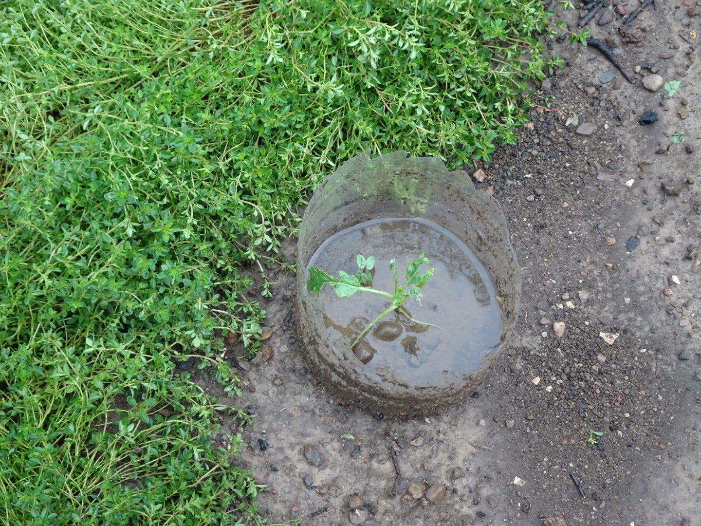 | My poor kale. Already almost destroyed by the bastard snail army, then drowned in my clever anti-snail device. Luckily, I have some more kale seedlings in the polytunnel. |