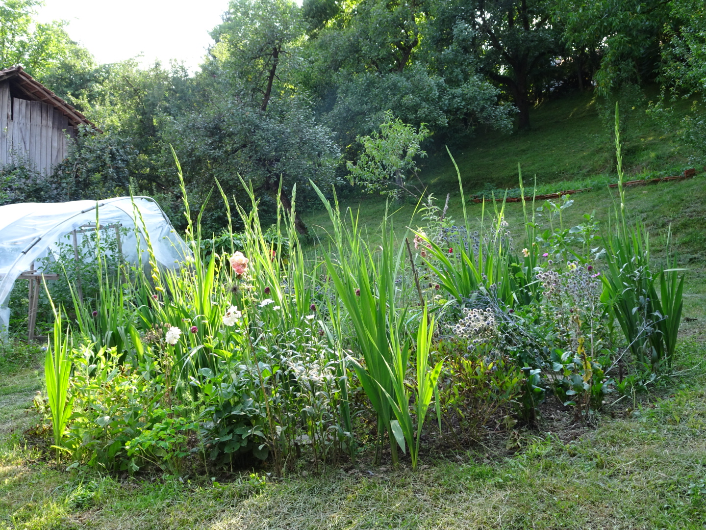 | The newest bed is filling up nicely. Lots of gladioli and sea hollies in here. Btw, sea hollies smell horrific in hot weather. Like donkey.