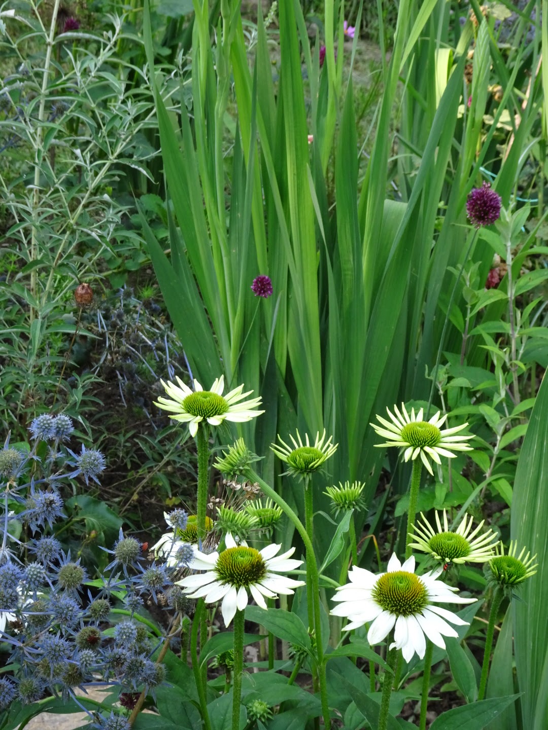 | Echinacea, (smelly) sea hollies, gladioli and alliums. |