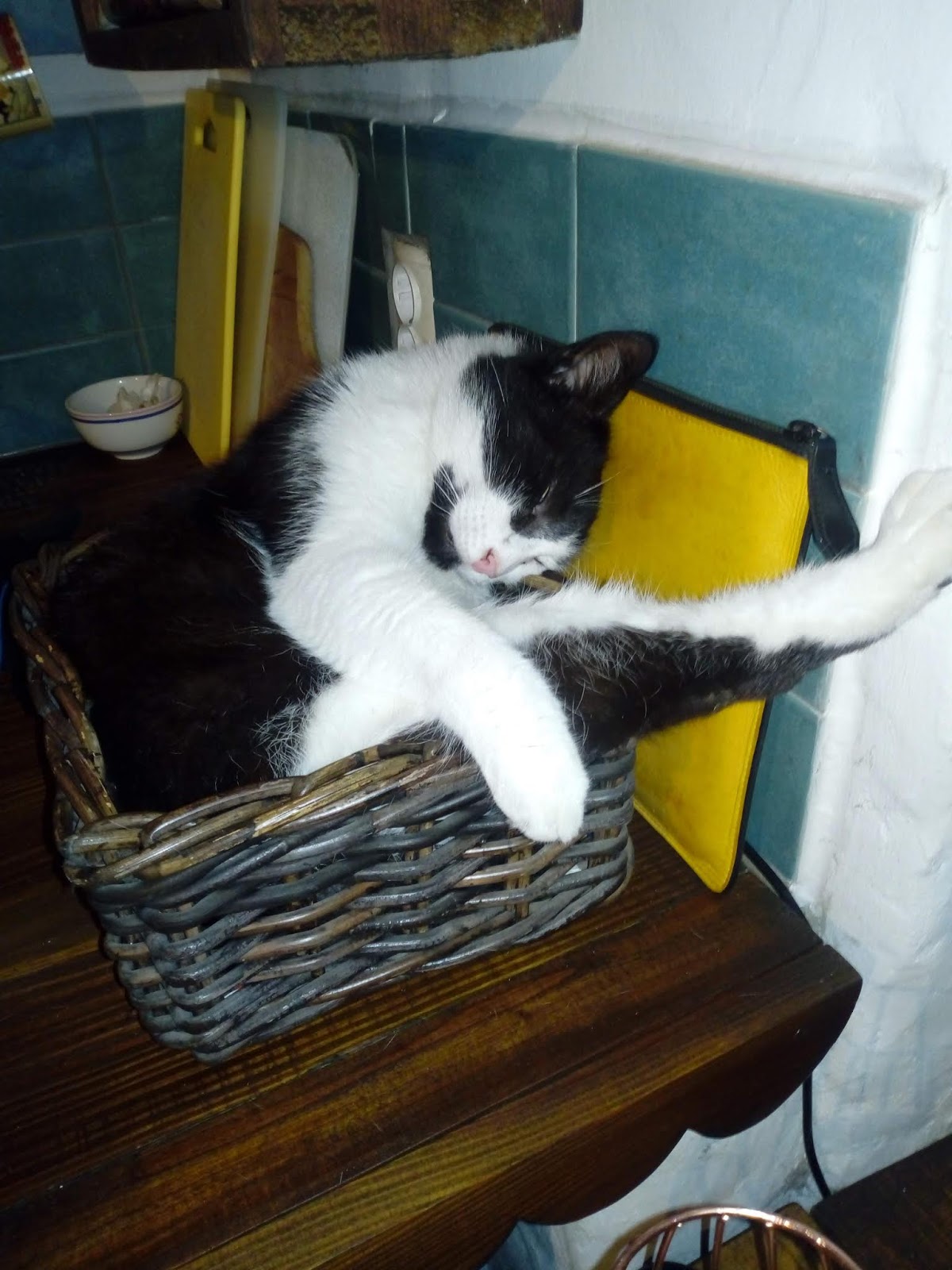 Sometimes our cats do weird things when we have visitors. Like that time Pepper refused to eat her food if Rob’s parents were in the same room. Or that time Pepper moved into the cupboard under the sink for a week. (She’s not the most sociable lady cat.) This time, Iggy took to ignoring our laps and sleeping every evening in the small wicker basket we use to dump our phones/bits and bobs in.