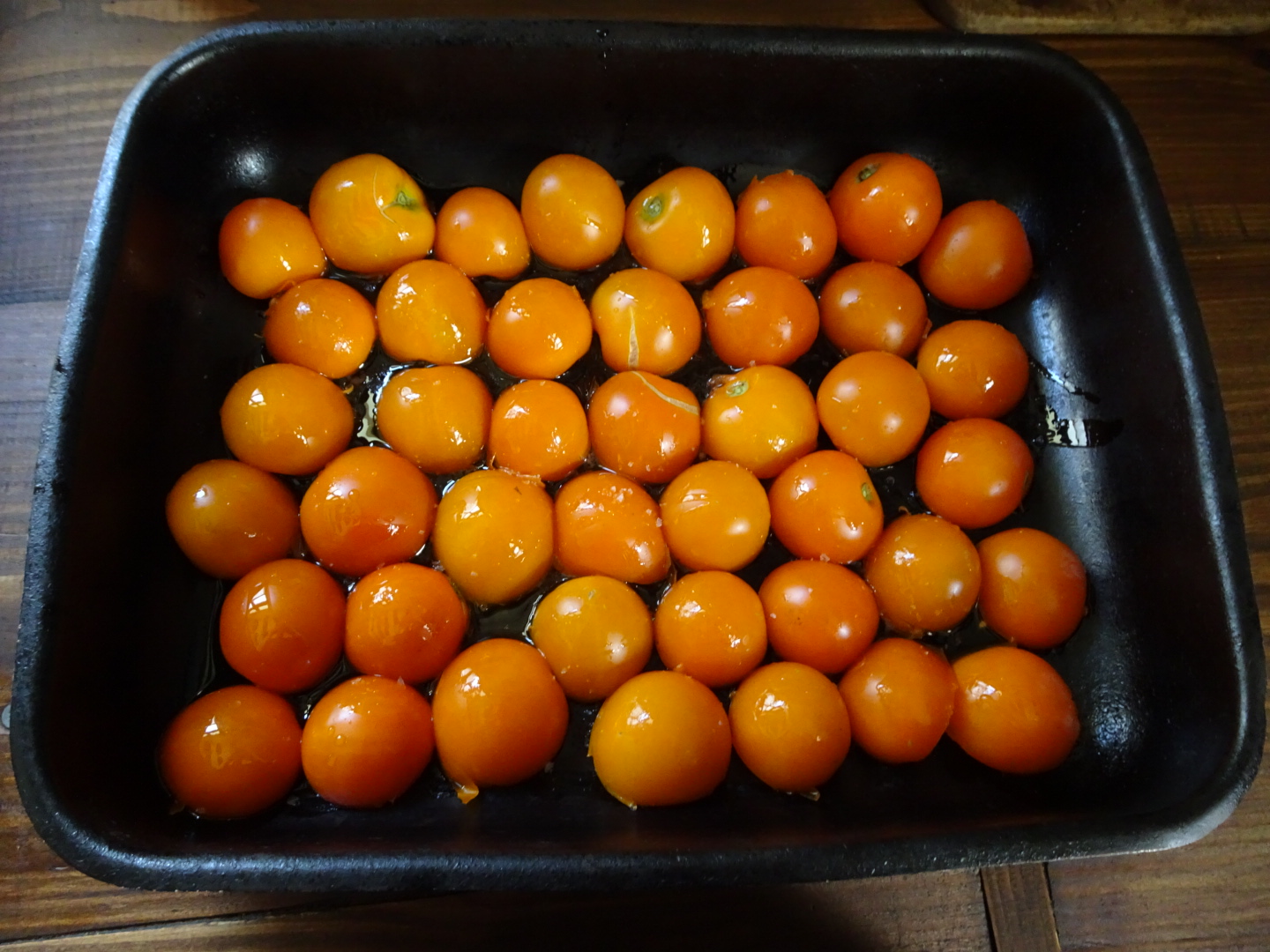 | We’re roasting down surplus tomatoes every week to blitz up and store in the freezer. These yellow tomatoes make the most amazing golden passata, which I think will look (and taste) great in curries. |