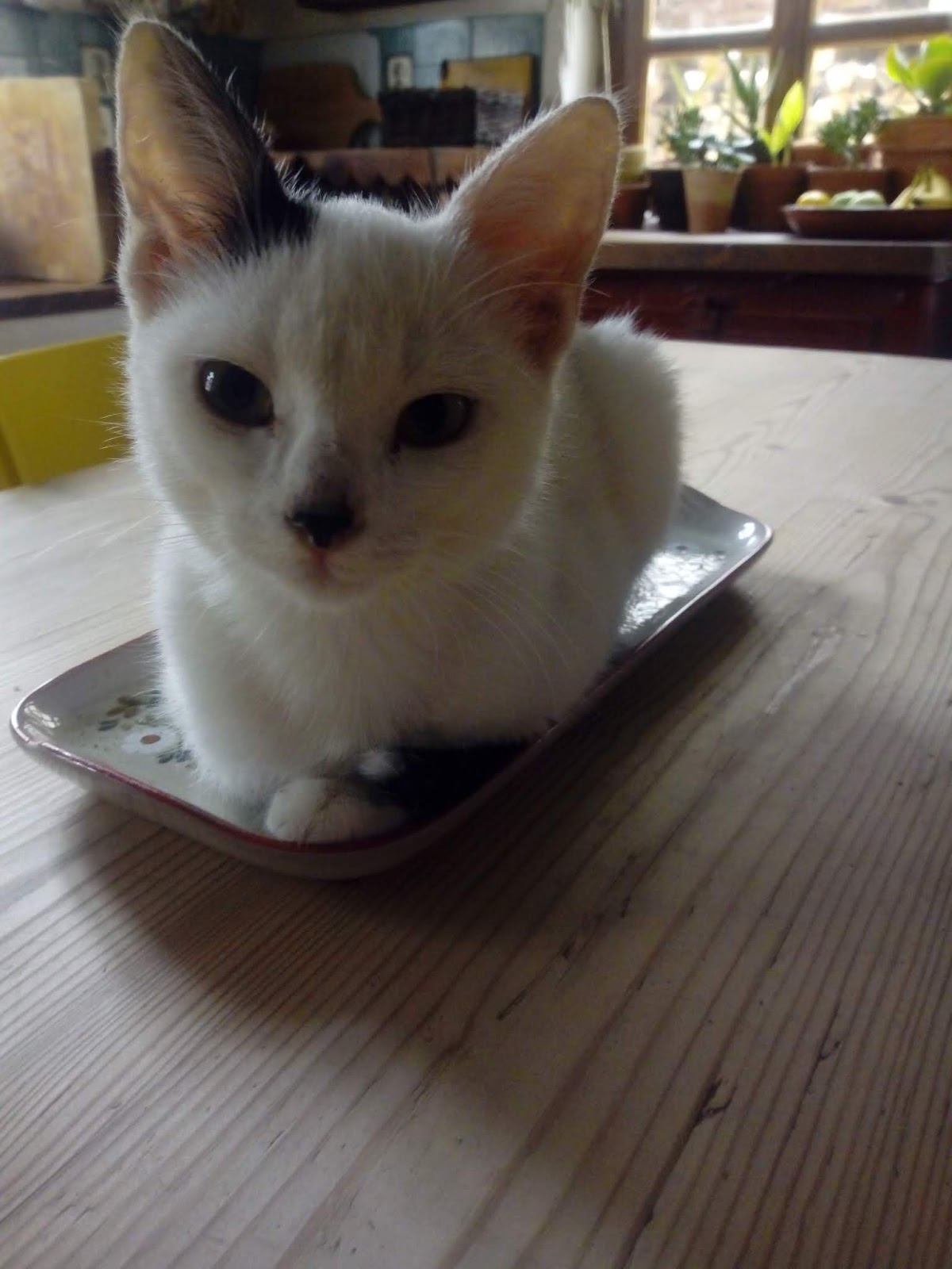 | Baxter claiming this plate as his own. Look at him, he’s practically daring me to do something about it. |