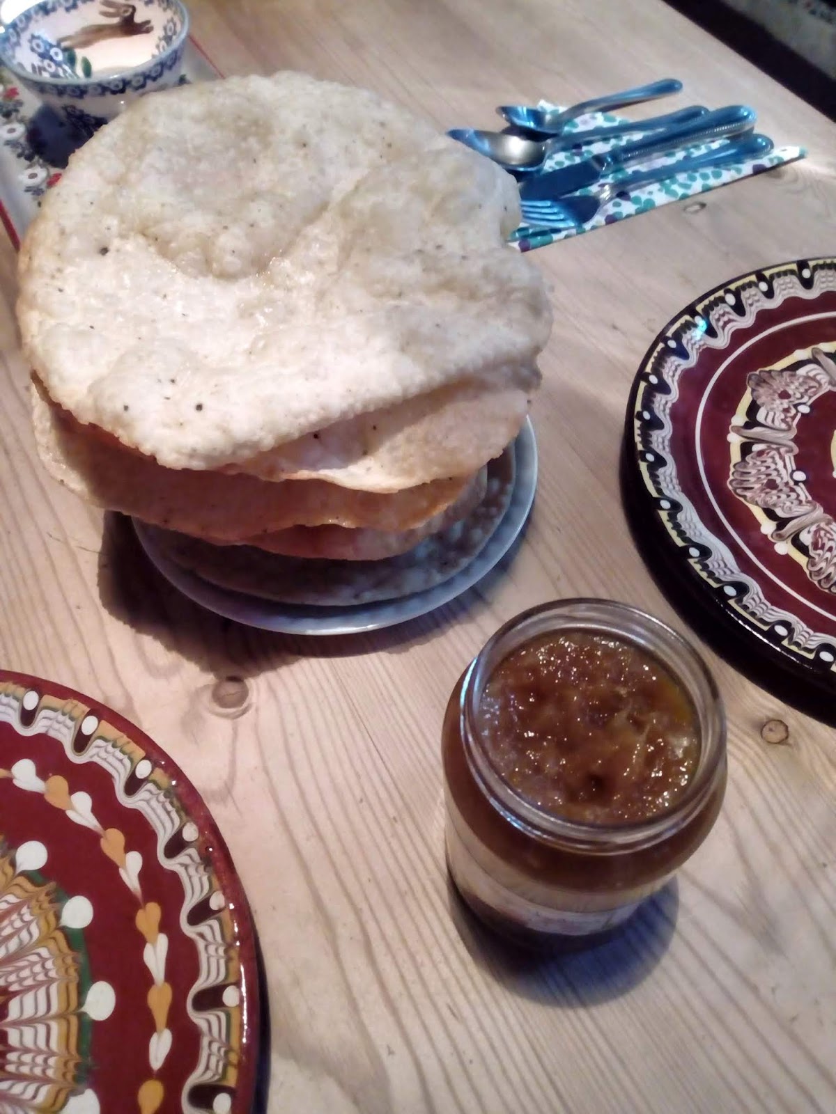 Anyway, back to the curry day and we struggled on making our curry feast, minus the coriander and unexpected protein. Rob even made some poppadoms, which we enjoyed with homemade mango chutney. (In your face, universe, we refuse to eat celery and go for a run. Your cruel games only make us stronger.) And it was all delicious. The end.