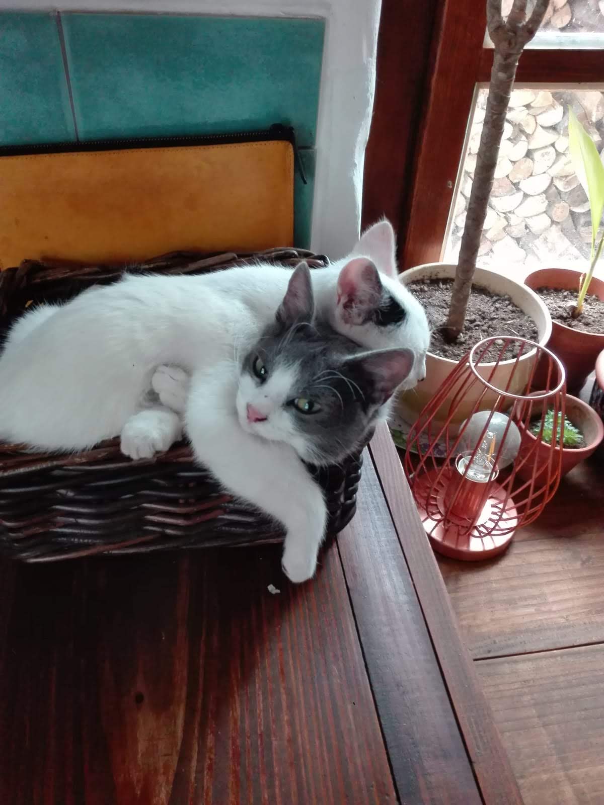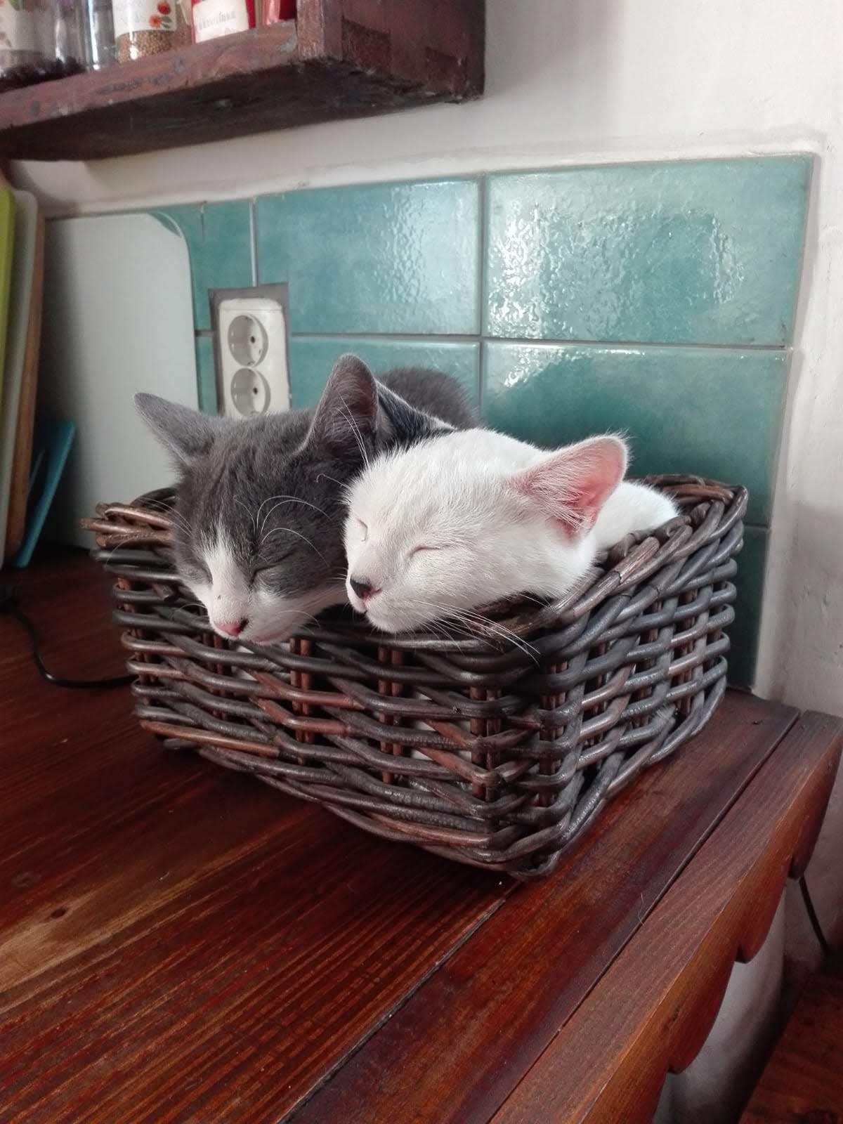 Also, the kittens have discovered the useful basket on the kitchen counter where we keep our phones, small change etc. It’s unbearably cute.