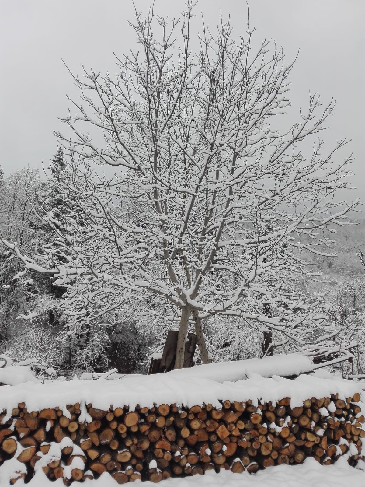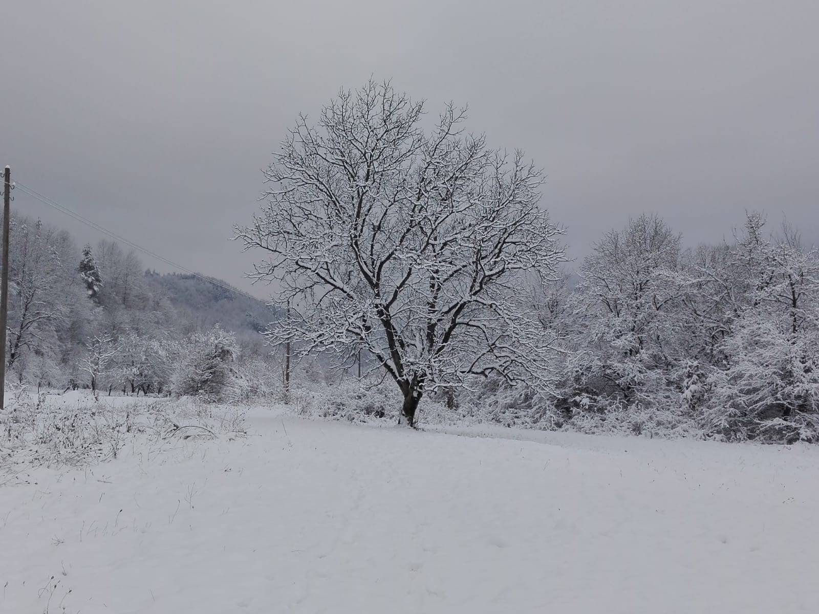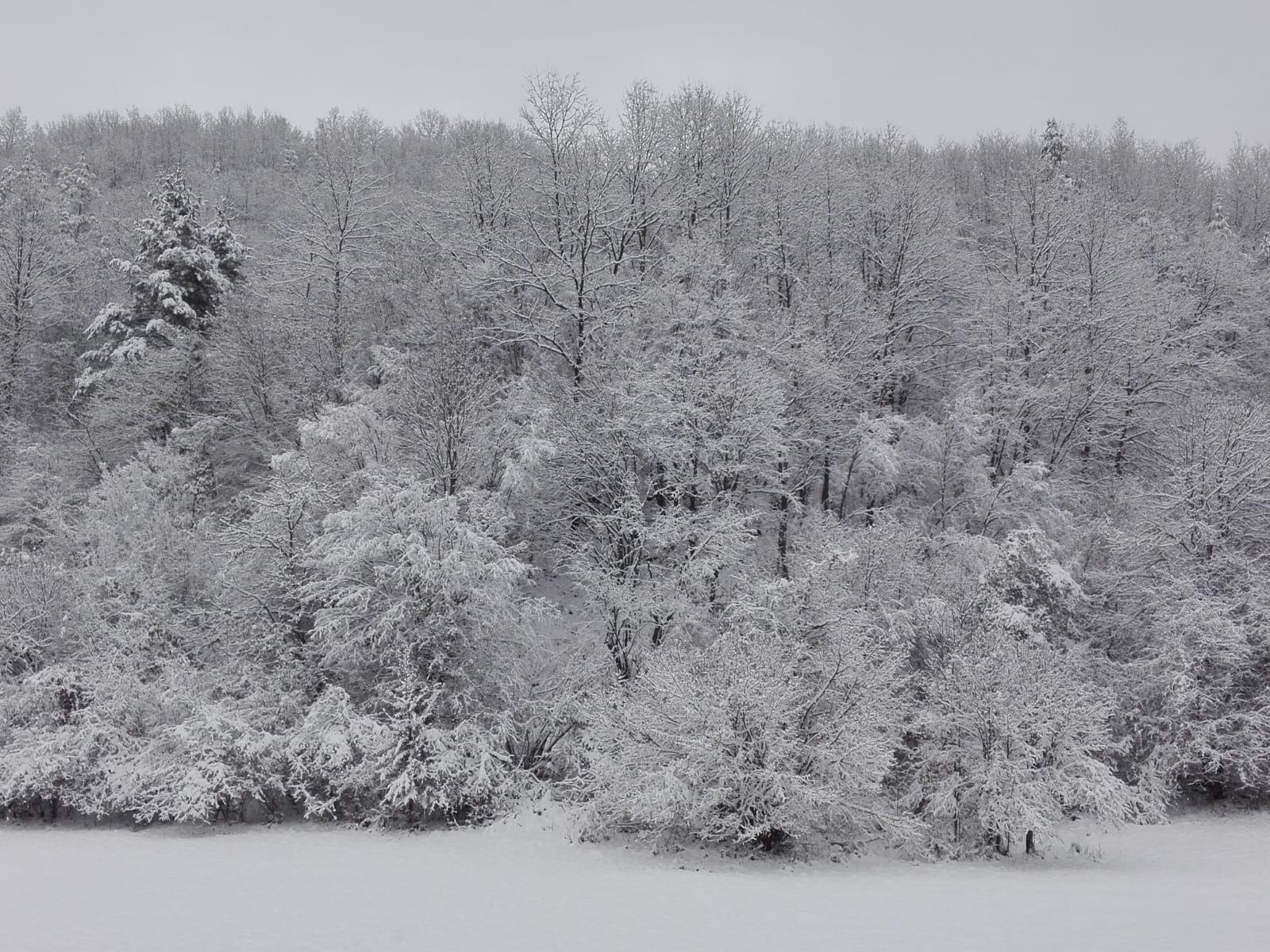 How’s this for a short post? Yesterday we had breakfast wine and pork fat with the neighbour, and went for a walk in the snow. Oh, and a hawk flew over our heads.
