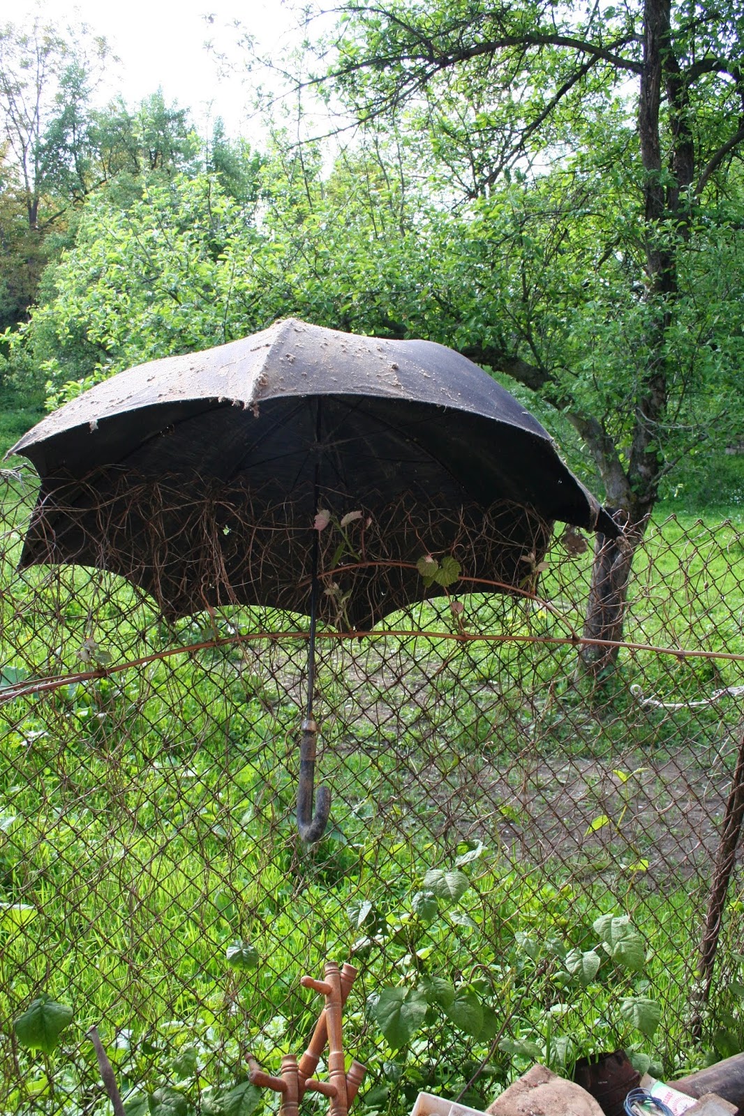 | The ‘view’ from the back of the house wasn’t exactly great. Unless you like chain link fences and haunted umbrellas. |