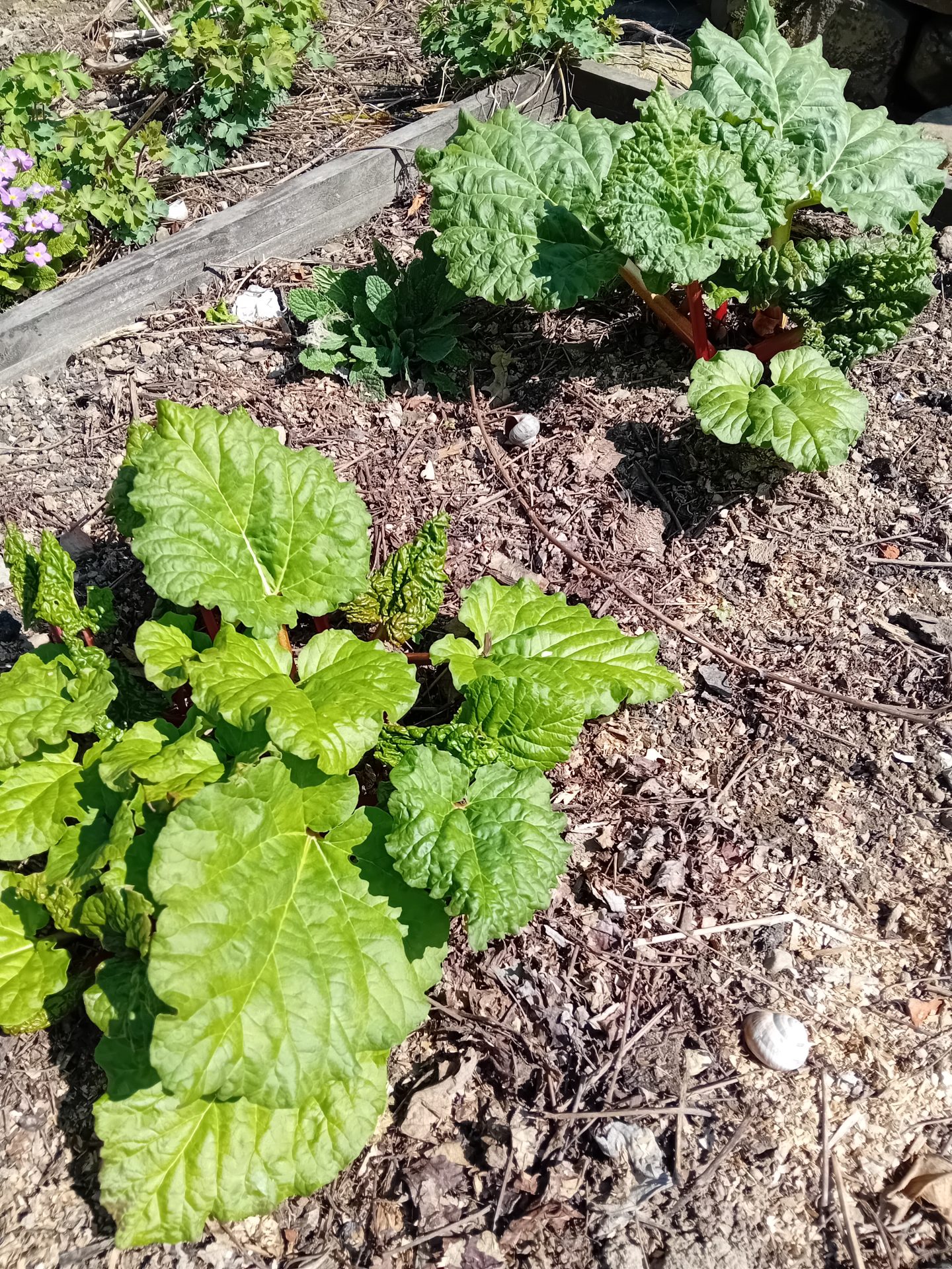Next, rhubarb emerging from its winter snooze. Gutted to see that only two of our three plants have come up this spring. I wonder why the third one died? It was well-established but not ancient.