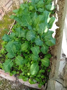 Still in the greenhouse, this next pic is spring cabbage that I sowed last year, and some winter purslane growing underneath. Regular purslane is a bugger of a weed in our garden, and even though I know it’s edible, we don’t eat it. But I love eating this winter version – the leaves are much nicer and more like a ‘normal’ leafy green (as opposed to the succulent-type leaf of the regular purslane).